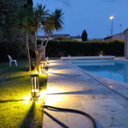 Éclairage fonctionnel et esthétique pour les abords de la maison.
